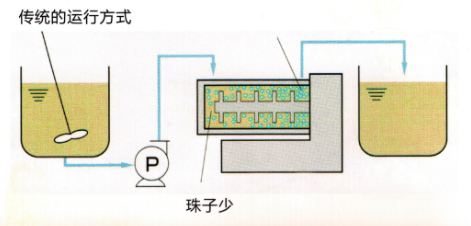 循環(huán)操作只需一個(gè)或兩個(gè)攪拌桶實(shí)現(xiàn)循環(huán)研磨,而且攪拌桶內(nèi)粗顆粒會(huì)快速沉淀而優(yōu)科學(xué)入研磨腔研磨。
