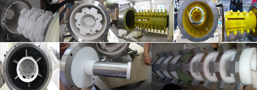 出料面積大,是盤式和渦輪式機(jī)器的2-4倍,物料通過(guò)性好,不易堵塞機(jī)器,在生產(chǎn)有膨脹性物料時(shí)優(yōu)點(diǎn)突出。冷卻換熱效果好。桶體,轉(zhuǎn)子,出料器三位冷卻,冷卻面積是盤式及渦輪式設(shè)備的1.3-1.5倍,有效控制物料的升溫問(wèn)題。